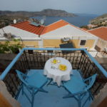 Η είσοδος στo studio Kyklamino 1 είναι από μια ξύλινη σκάλα που οδηγεί στην κουζίνα και στο καθιστικό. Η ξύλινη επένδυση δίνει μια πολύ φιλόξενη αίσθηση στο χώρο με το διπλό κρεβάτι να είναι πάνω σε ξύλινο σοφά με παραδοσιακά ξυλόγλυπτα σχέδια στο μπαλκονάκι που είναι γύρω του. Ο χώρος είναι πολύ φωτεινός από τα παράθυρα ενώ το μπαλκόνι του διαθέτει μερική θέα προς το λιμάνι του Γυαλού, ιδανικό για ζευγάρια που θέλουν να απολαύσουν όλα τα υπέροχα σημεία του Χωριού της Σύμης σχεδόν σε απόσταση αναπνοής!