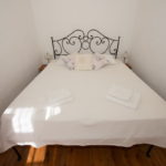 An outside stairway leads onto a terrace with partial views out to sea and Turkey beyond. From here enter into the private vine covered courtyard. The front door leads into the hall; there is a small double room to one side and to the other is the fitted kitchen with mini oven. The salon is at the front of the property – a large airy room with high ceiling housing traditional furniture and opening onto a small balcony. The main double bedroom is off from the lounge. The fully tiled shower room is located in the courtyard. A wooden staircase leads up from the courtyard to a wooden platform with panoramic views over the harbour.